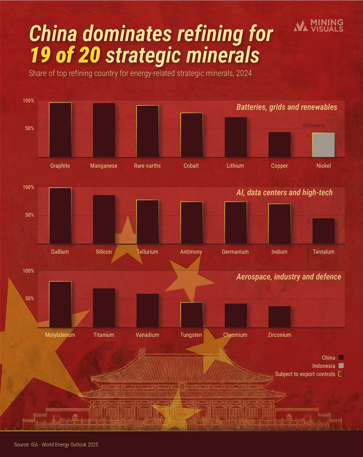 Data from 2024 indicates a high degree of concentration in this sector. According to the IEA's Global Critical Minerals Outlook 2025, China currently holds the leading refining share for 19 of the 20 strategic minerals essential to the global economy. This processing capacity places the country at the center of supply chains for technologies ranging from electric vehicle batteries to advanced semiconductors.