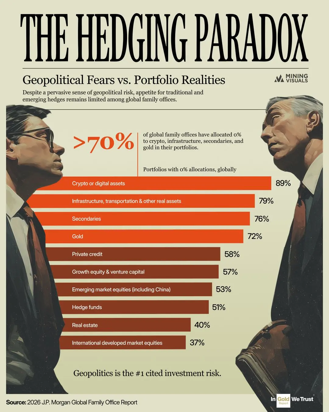 The data reveals a fascinating behavioral gap in the ultra-wealthy demographic. Family offices correctly identify the shifting, fragmented global order and volatile inflation as their primary threats. Yet, their portfolios reflect an era of seamless globalization that has arguably already ended. As the geopolitical landscape continues to fracture, this "Hedging Paradox" suggests that when family offices finally decide to align their portfolios with their stated fears, the ensuing capital rotation into gold, infrastructure, and real assets could be significant.